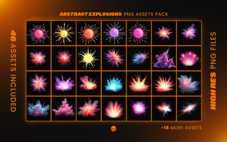 Featuring a vast array of different assets with varying looks and feels, this pack will give you the right abstract explosion asset you need for any design.