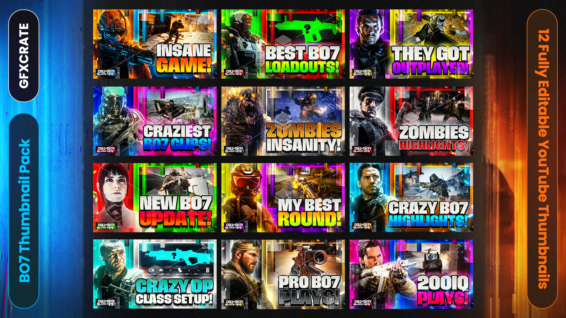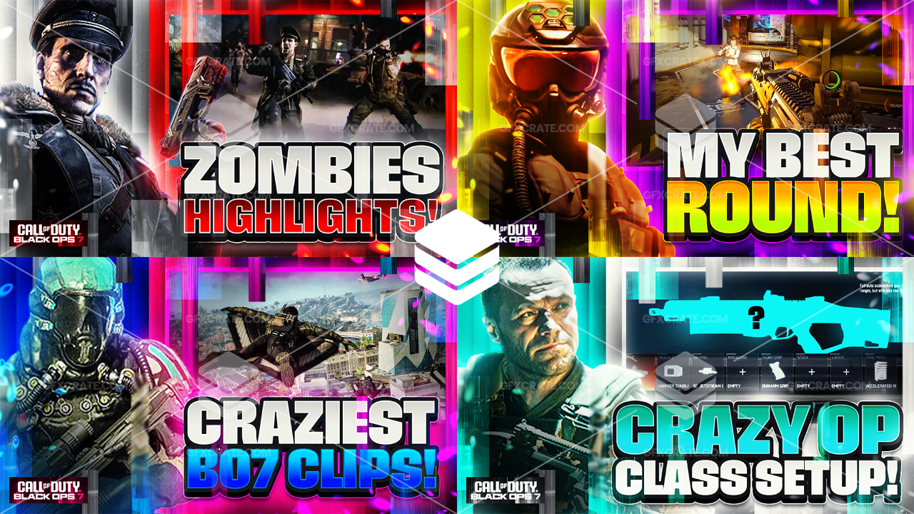 This pack includes 12 fully editable .psd thumbnails for Call of Duty: Black Ops 7 content on YouTube!