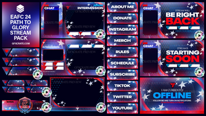 Get your livestream ready for the Copa America 2024 Path to Glory promo on EAFC 24 (FIFA 24) with this professional-looking stream template pack! Perfect for Twitch, YouTube and Facebook streams or for any other streaming site.