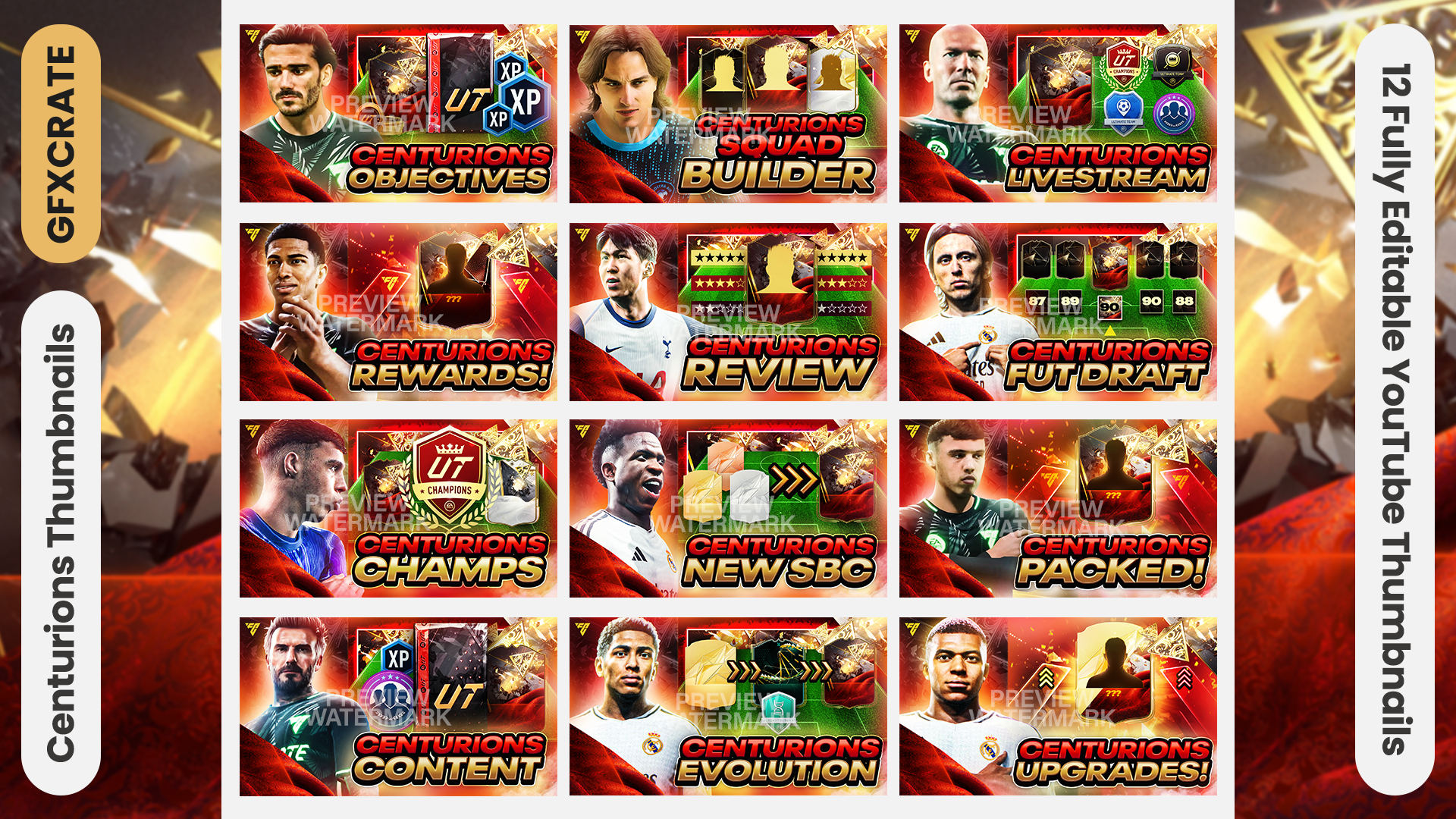 Get your channel ready for the Centurions promo with these professional-looking thumbnails for FC 25! You can also edit all of them as much as you want to switch them up and make them truly yours!