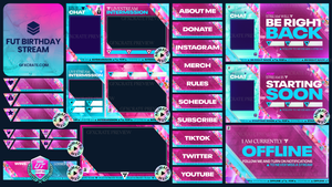 Get your livestream ready for the FUT Birthday promo on EAFC 25 (FIFA 25) with this professional-looking stream template pack! Perfect for Twitch, YouTube and Facebook streams or for any other streaming site.