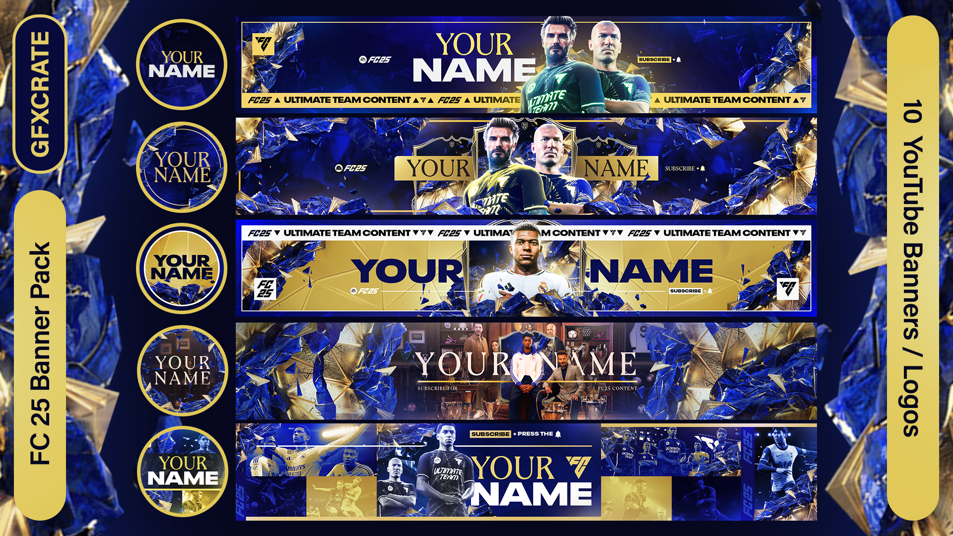 Get your channel looking fresh for Team of the Year, the biggest promo in FC25 with these professional-looking banner and logos! You can also edit all of them as much as you want to switch them up and make them truly yours!