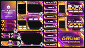 Get your livestream ready for the Track Stars promo on EAFC 25 (FIFA 25) with this professional-looking stream template pack! Perfect for Twitch, YouTube and Facebook streams or for any other streaming site.