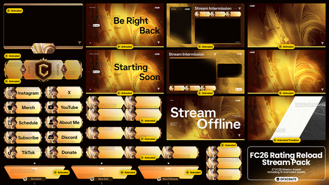 Includes 16 animated products with moving FC26 branding and extra moving details to add an extra wow factor to your stream!