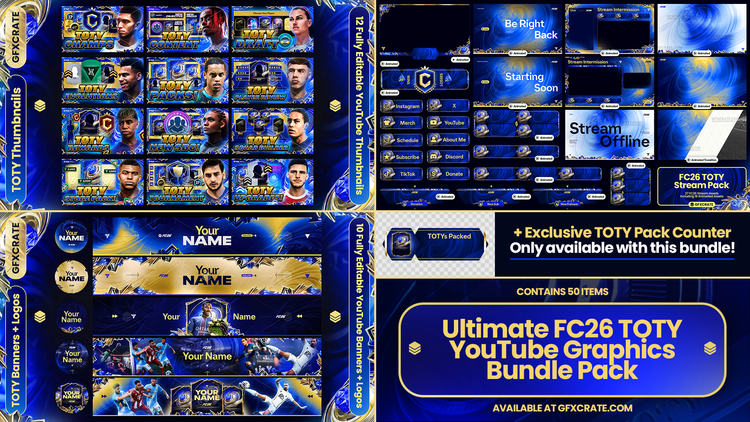 Get the ultimate YouTube/streaming graphics bundle for TOTY in FC 26 with this incredible value bundle which includes 50 items!