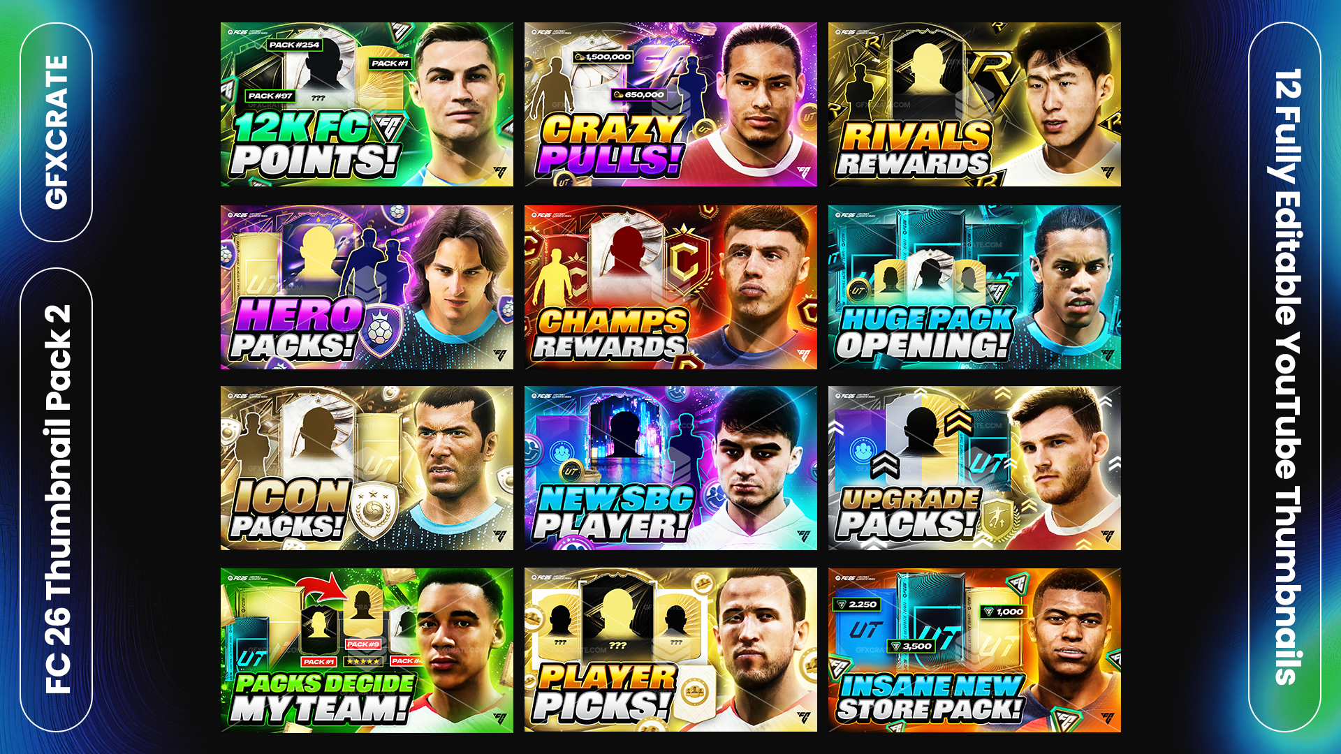 FC26 Fully Editable YouTube Thumbnail Pack V2