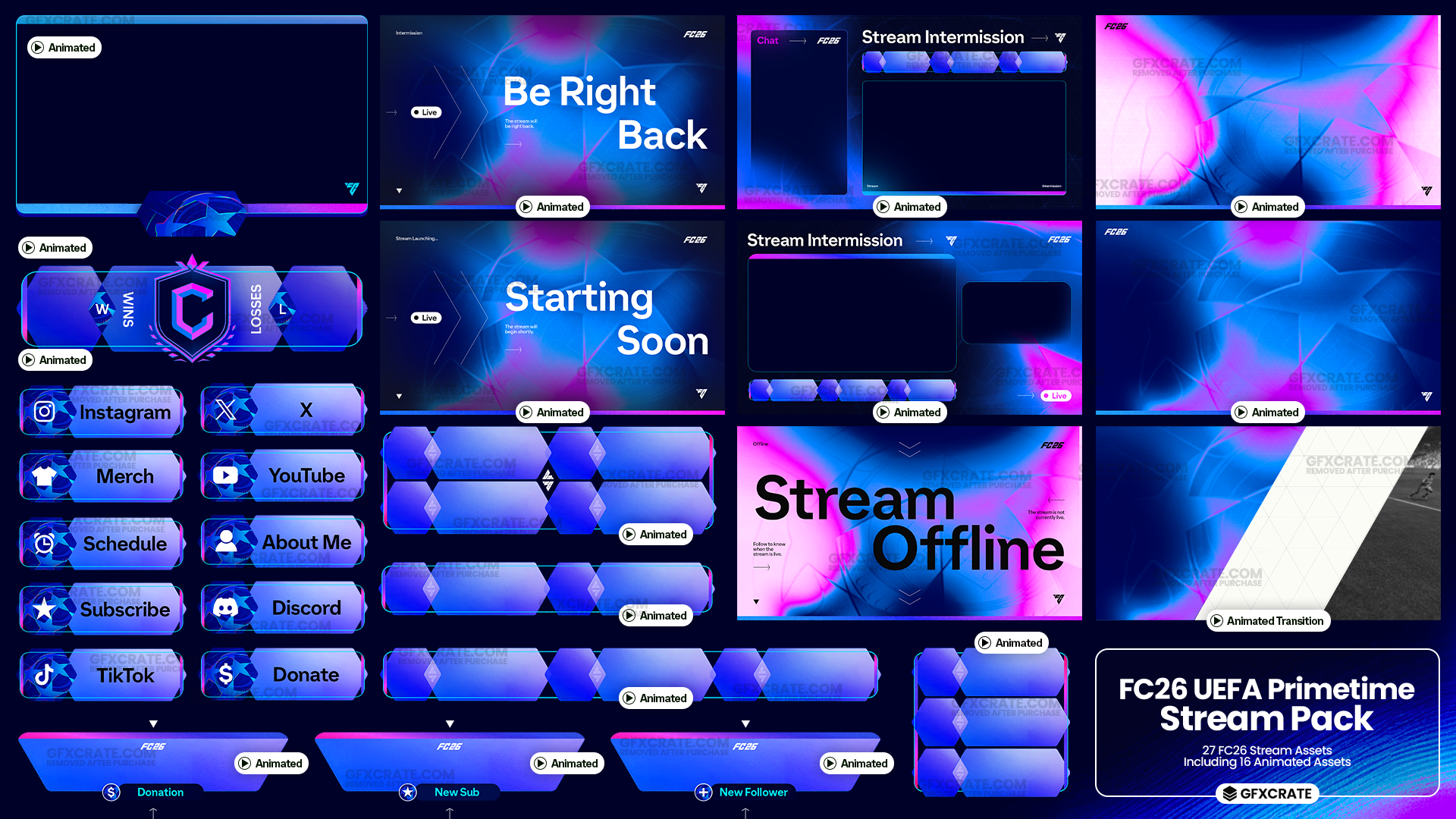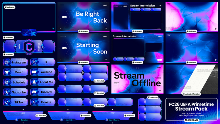 Includes 16 animated products with moving FC26 branding and extra moving details to add an extra wow factor to your stream!