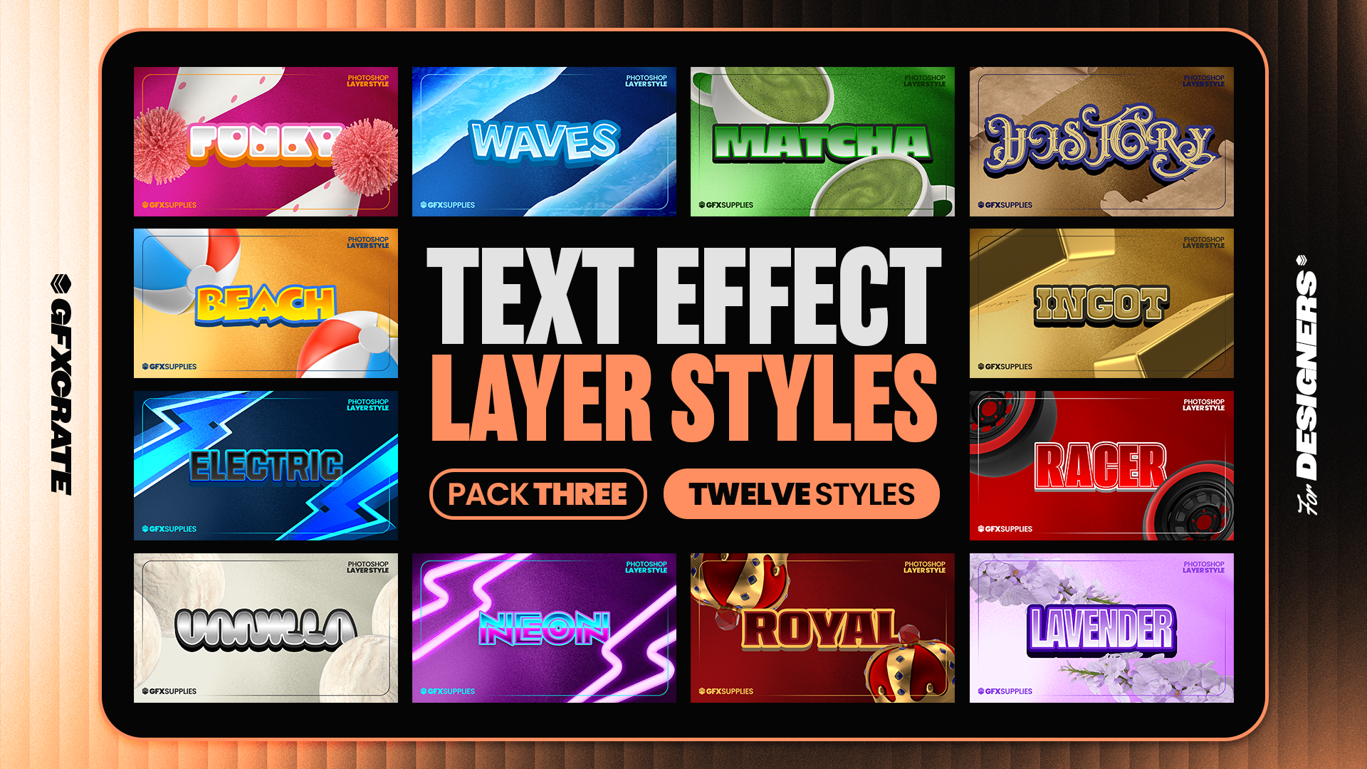 Level up your creations with 48 unique and different styles - They're easy to import into Photoshop so you can create awesome-looking text instantly for any of your design projects!