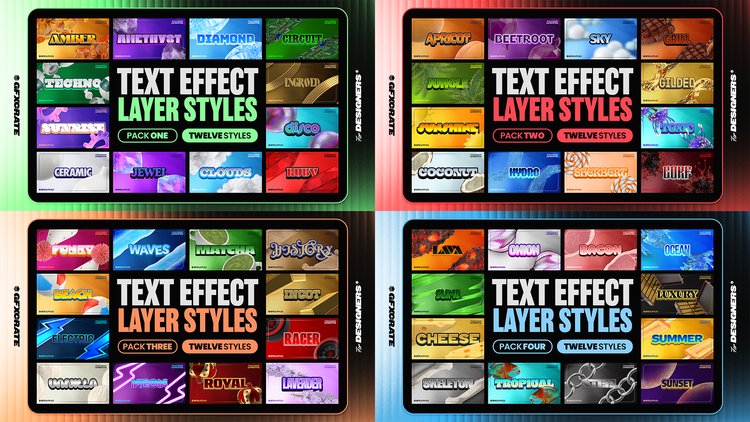 Photoshop Text Layer Styles Pack Ultimate Bundle - Add 48 Unique Styles In One Click!