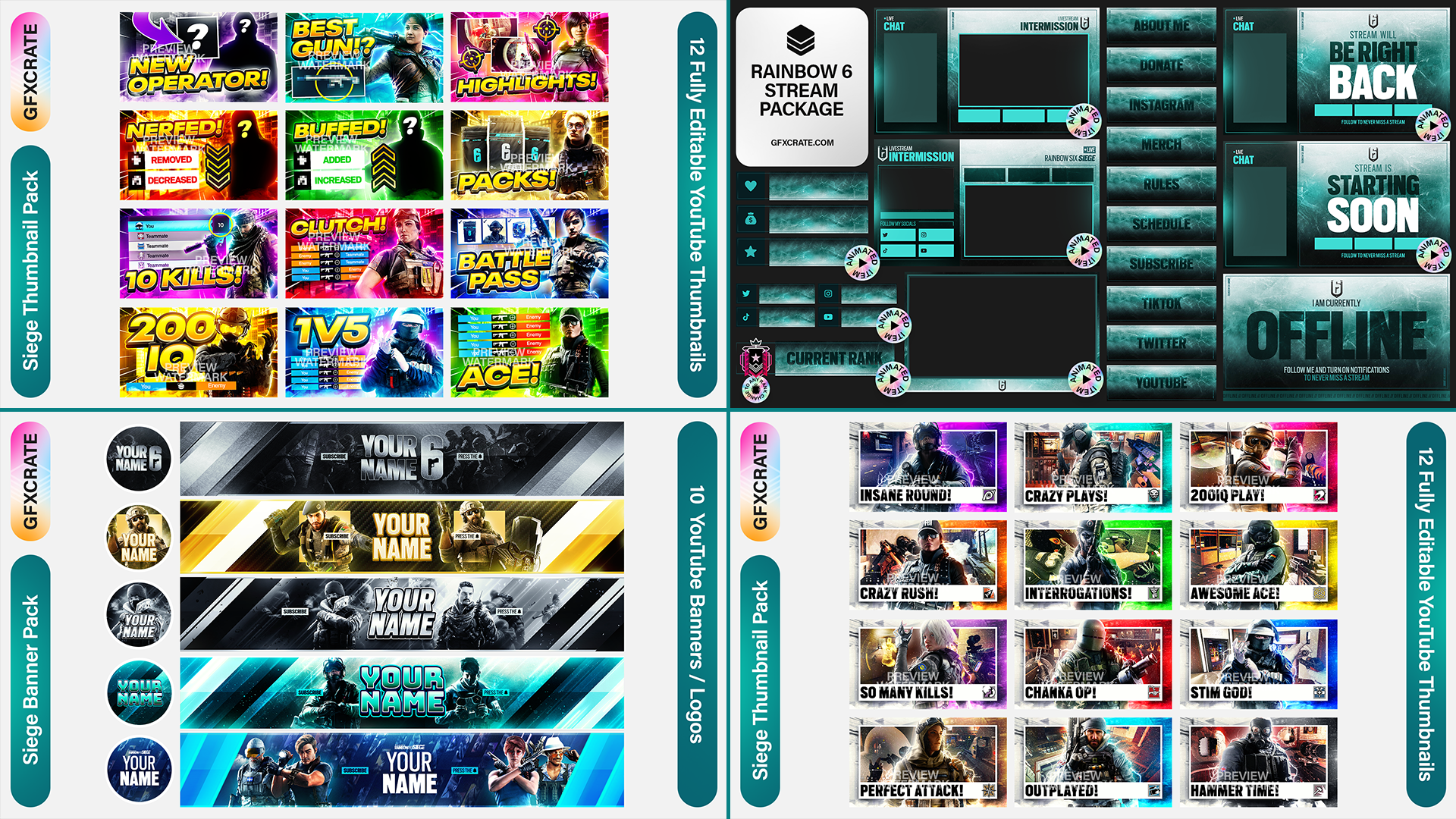 Rainbow Six Siege Ultimate YouTube Graphics Bundle (53 Stream, Thumbnail, Banner + Logo files!)