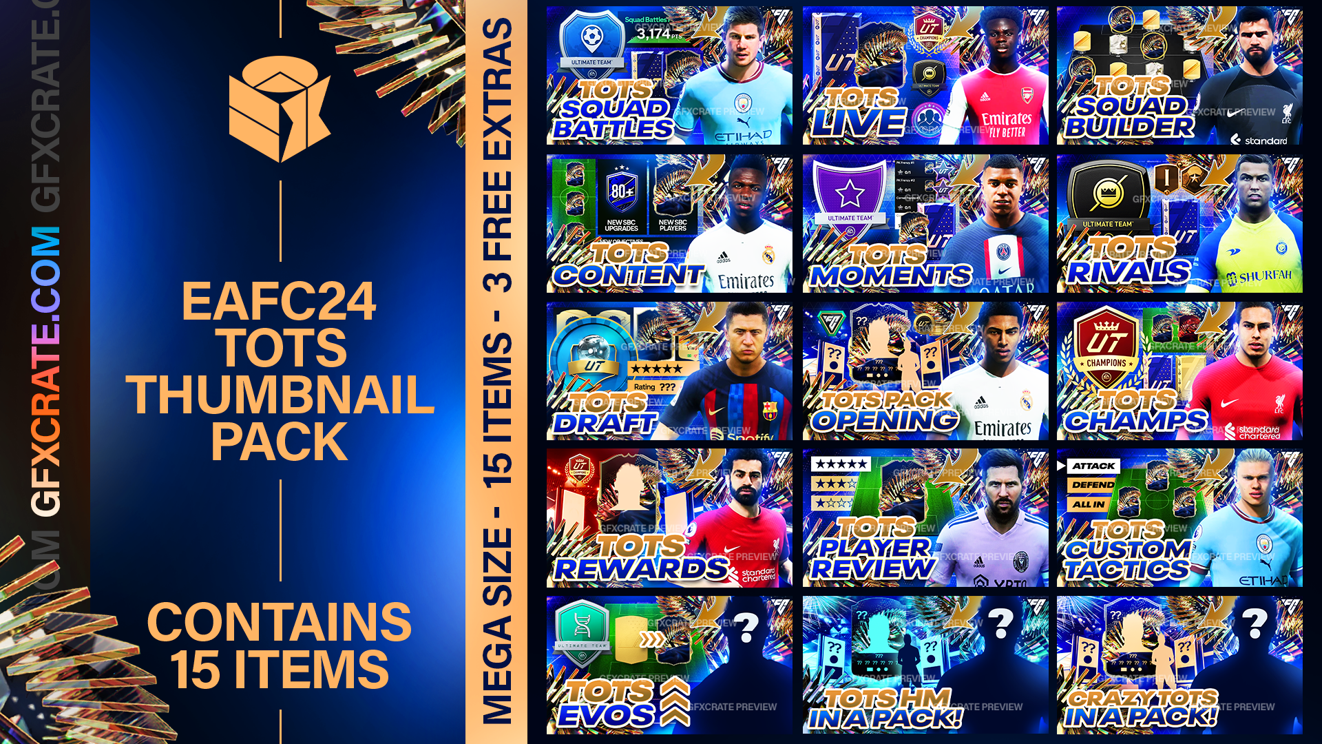 This pack includes fully editable .psd thumbnails for TOTS in EAFC 24 (FIFA 24)!